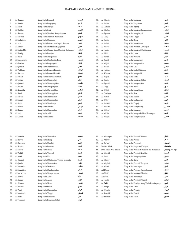 99 Asmaul Husna Lengkap Dengan Arti Arab Latin Terjemahan Bahasa Indonesia Bangka Pos from cdn-2.tstatic.net Check spelling or type a new query. We did not find results for: Maybe you would like to learn more about one of these?